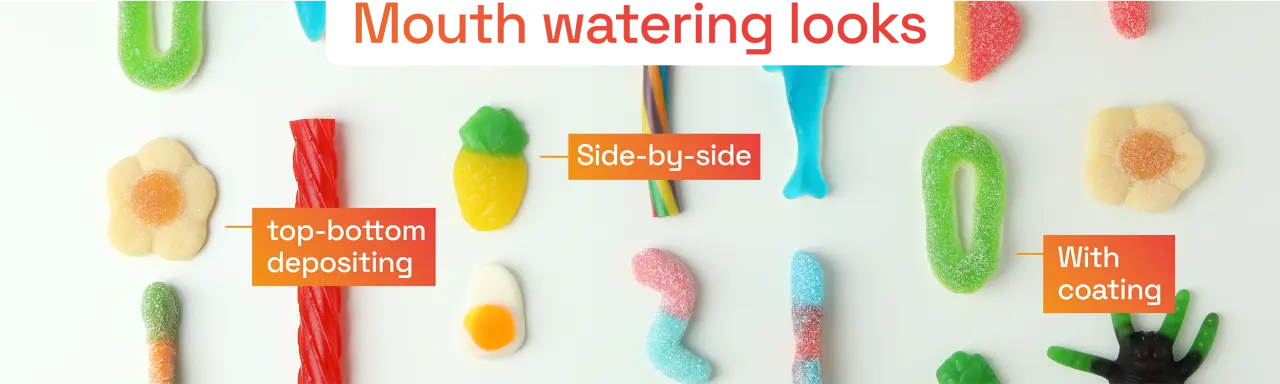 La textura de las gominolas y gelatinas depende del aglutinante utilizado. La gelatina tiene un mordisco muy masticable y elástico y un gran comportamiento de fusión en la boca, por lo que libera mucho sabor. La pectina, en cambio, tiene un mordisco muy corto, por lo que es muy fácil de morder. El almidón produce un mordisco largo y agradable y es un poco más pegajoso para los dientes. Los gelificantes también pueden combinarse para crear una textura única.